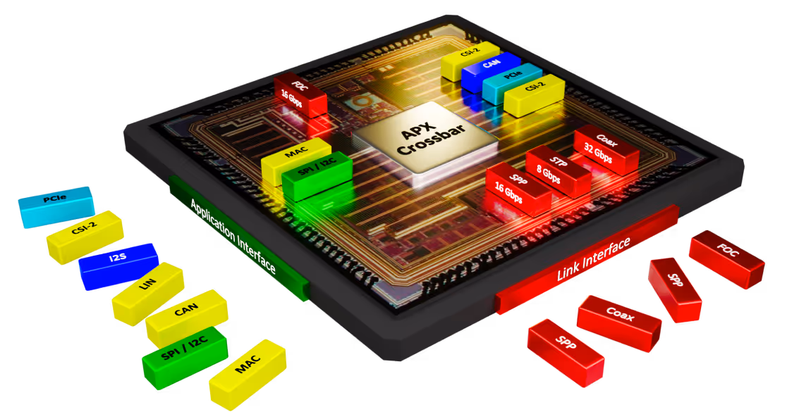 APXpress is a scalable, hardware-based network of nodes engineered to surpass the constraints of today’s automotive networking technologies. At its core lies a dedicated 32 Gbps low-power physical layer (PHY), fully implemented in hardware to deliver exceptional throughput while minimizing energy consumption.